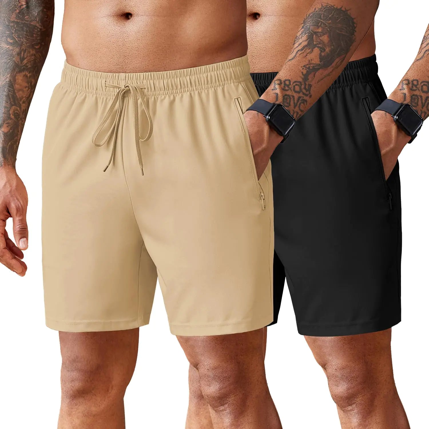 COOFANDY Mens Gym Shorts 5 Inch Athletic Workout Shorts Lightweight Casual Short with Zipper Pockets Khaki/Black