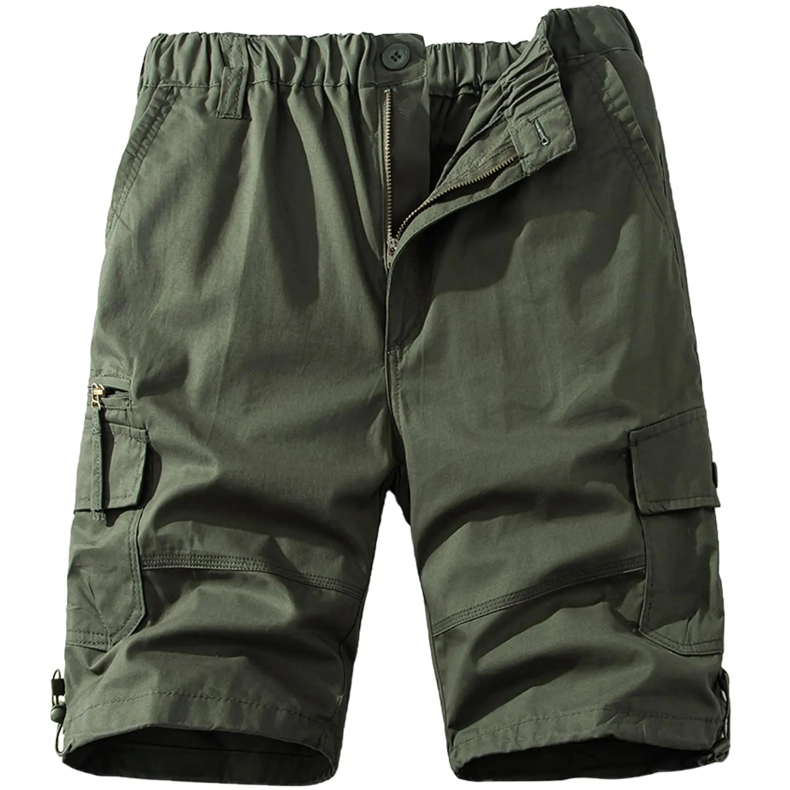 Mylldey Mens Cargo Shorts Elastic Waist Cotton Shorts Relaxed Fit Casual Outdoor Hiking Shorts with Multi Pockets Army Green 3XL