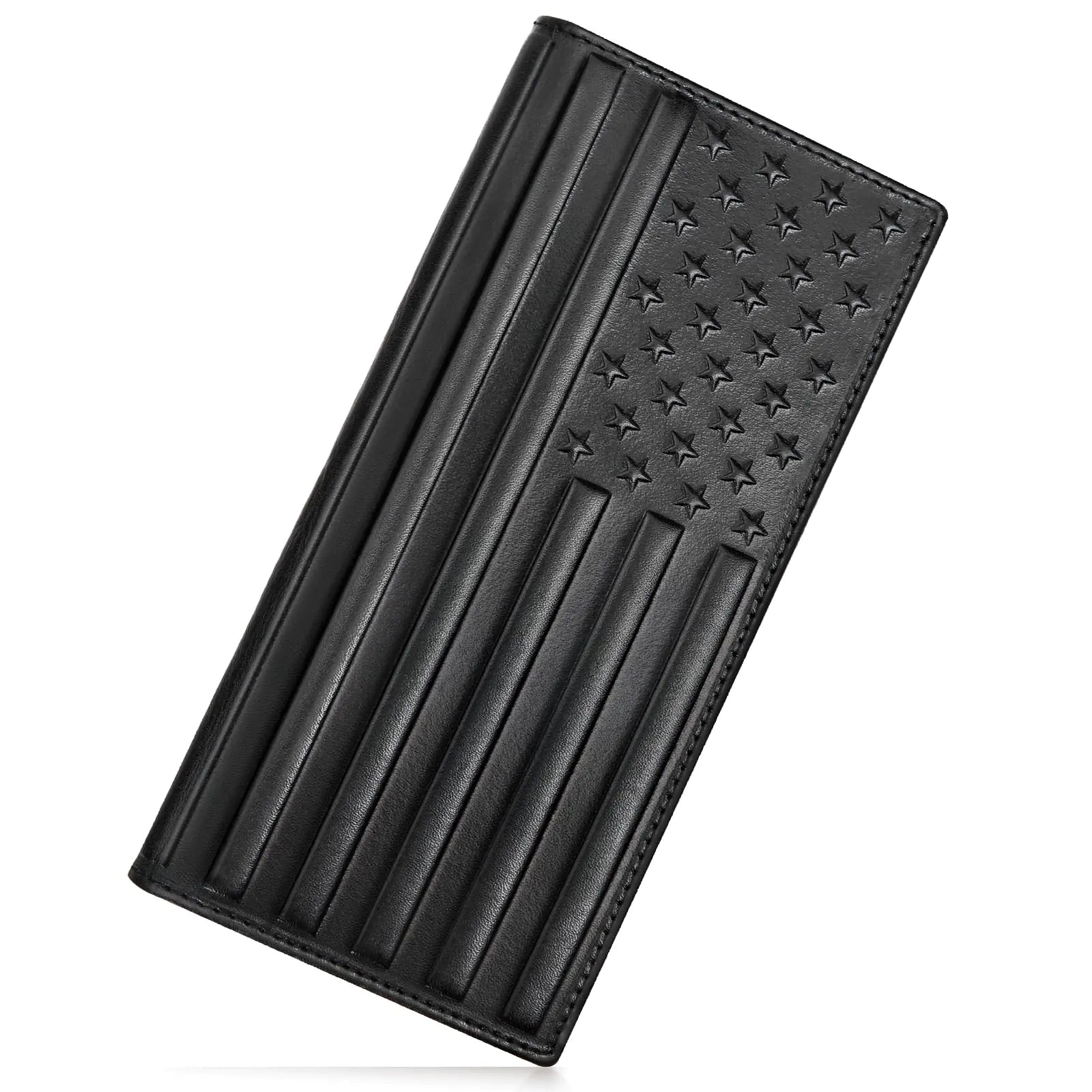 Pefiam Long Leather Wallet for Men Checkbook Wallet for Men Bifold Large Wallet for Men Rodeo Mens Western Cowboy Wallet Gift for Men (American FlagBlack)