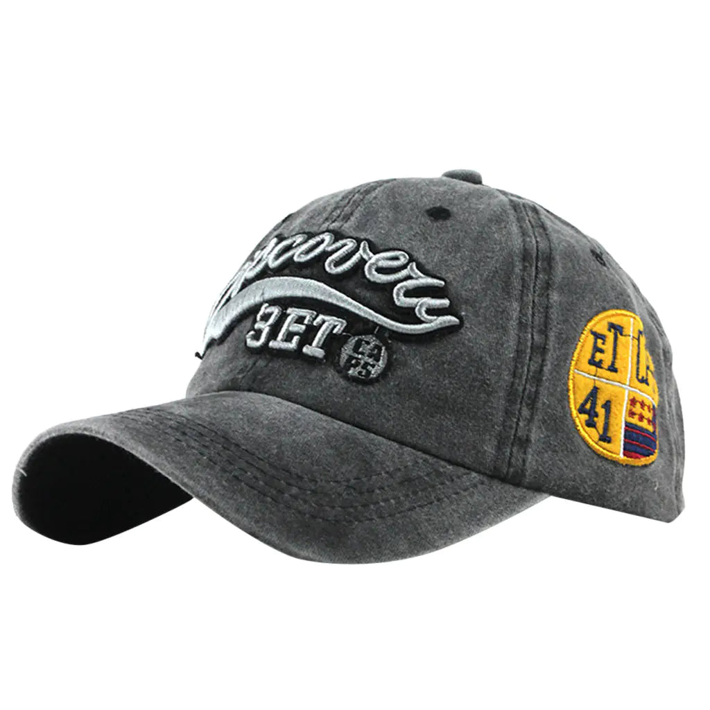 Washed Denim Baseball Cap with Embroidered Letters